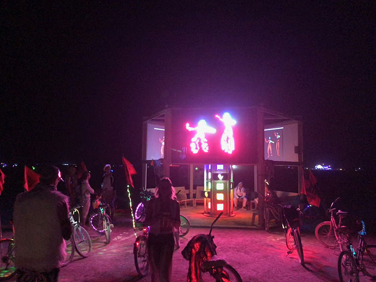 My customer Rajeev advani used 100PCS 180W SK9822 LED Matrix display ( Pixels : 600 Pixel ; resolution : 30dots(W)*20dots(L) ; Pixel pitch : 20mm ; Dimension/mm : 600*400mm ; Waterproof grade : waterproof IP65 ) to create a large LED display for an art installation at the burning Man festival ,The waterproof even survived a big dust storm