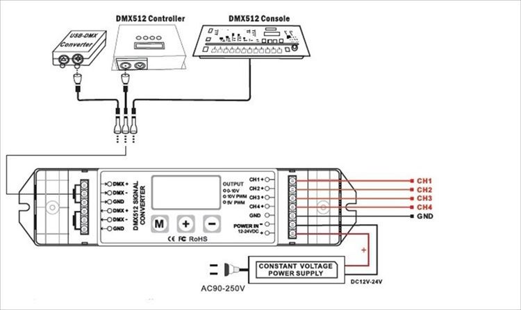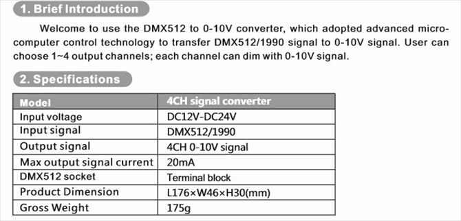 - Product description: 4CH DMX512 decoder 0-10V signal converter